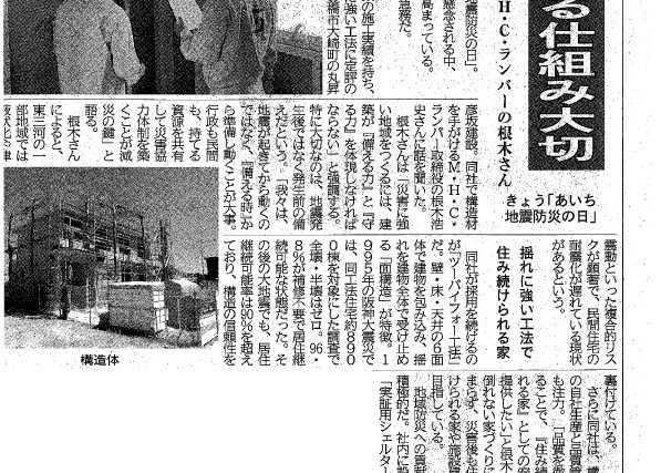 官民で備える仕組み大切 ヒコケングループM.H.C.ランバーの根木さん きょう「あいち地震防災の日」 9日は県が定めた「あいち地震防災の日」。 南海トラフ地震などの発生が懸念される中、東三河でも「備え」の重要性が高まっている。 耐震化や減災への取り組みは急務だ。 東三河から名古屋圏を中心に店舗やビル、工場、各種施設建築から住宅まで多数...»Read more